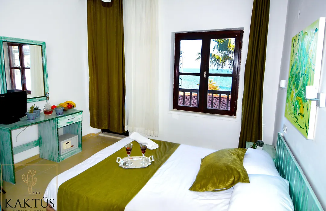 Kaktus Boutique Hotel Side, elektrikli su ısıtıcısı, cam eşyalar gibi olanakların yanı sıra kasa, veranda, balkon ile donatılmış 14 oda sunmaktadır. Bu odaların bazıları deniz manzaralıdır. Ekstralar arasında banyo odalarında yer seviyesinde duş, ayrı tuvalet bulunmaktadır.